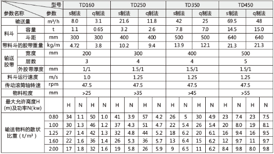 TD系列鬥式提升機(皮帶式鬥式提升機)由運行部分(料鬥與牽引膠帶),帶有傳動滾筒的上部區段,帶有拉緊滾筒的下部區段,中間機殼,驅動裝置,逆止制動裝置等組成,适用于向上輸送松散密度ρ<1.5t/m³粉狀、粒狀和小塊狀的無磨琢性和半磨琢性散狀物料,如煤、砂、焦末、水泥、碎礦石等。